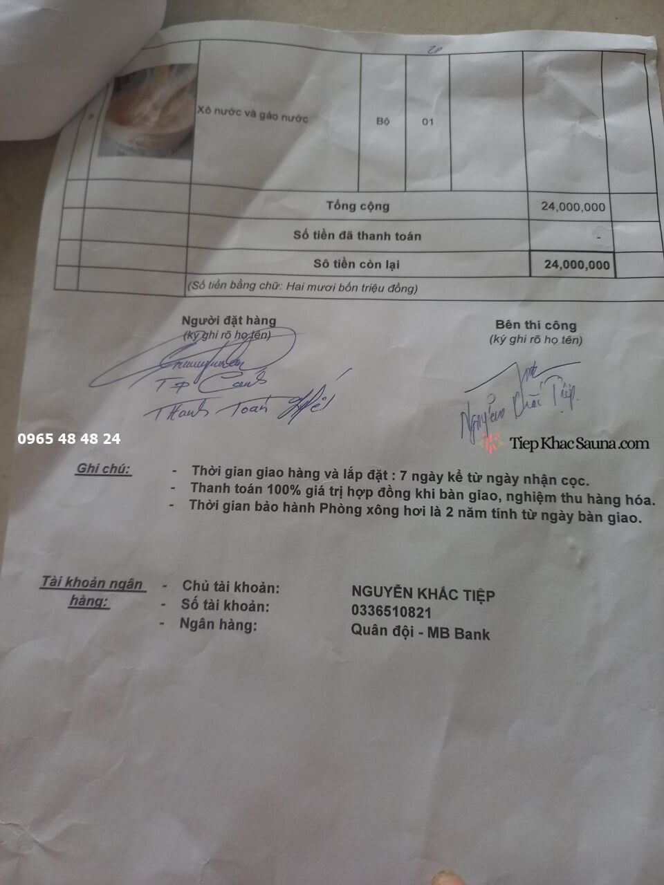 - Đã bao gồm Phụ kiện và thiết bị chuyên dụng trong phòng. Danh sách phụ kiện gồm: Máy xông hơi khô, bộ điều khiển nhiệt, đèn chuyên dụng, khung bao máy, đồng hồ nhiệt và độ ẩm, đồng hồ cát, đá núi lửa chịu nhiệt chống nổ, bộ xô nước và gáo nước. (Vui lòng xem chi tiết tại hợp đồng bàn giao đính kèm)