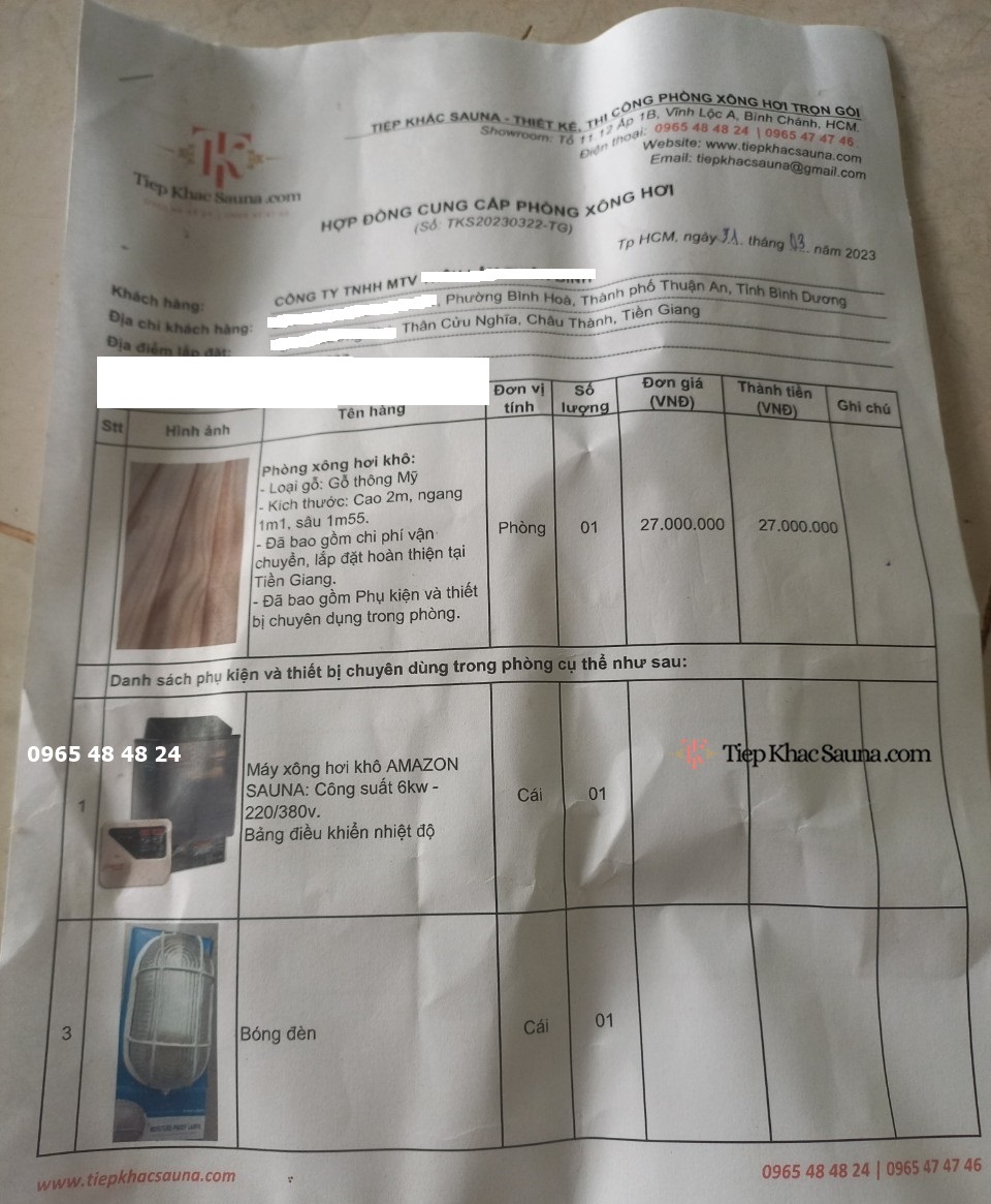 Danh sách phụ kiện và thiết bị chuyên dụng trong hợp đồng phòng xông hơi spa cho khách hàng tại Tiền Giang trang 1