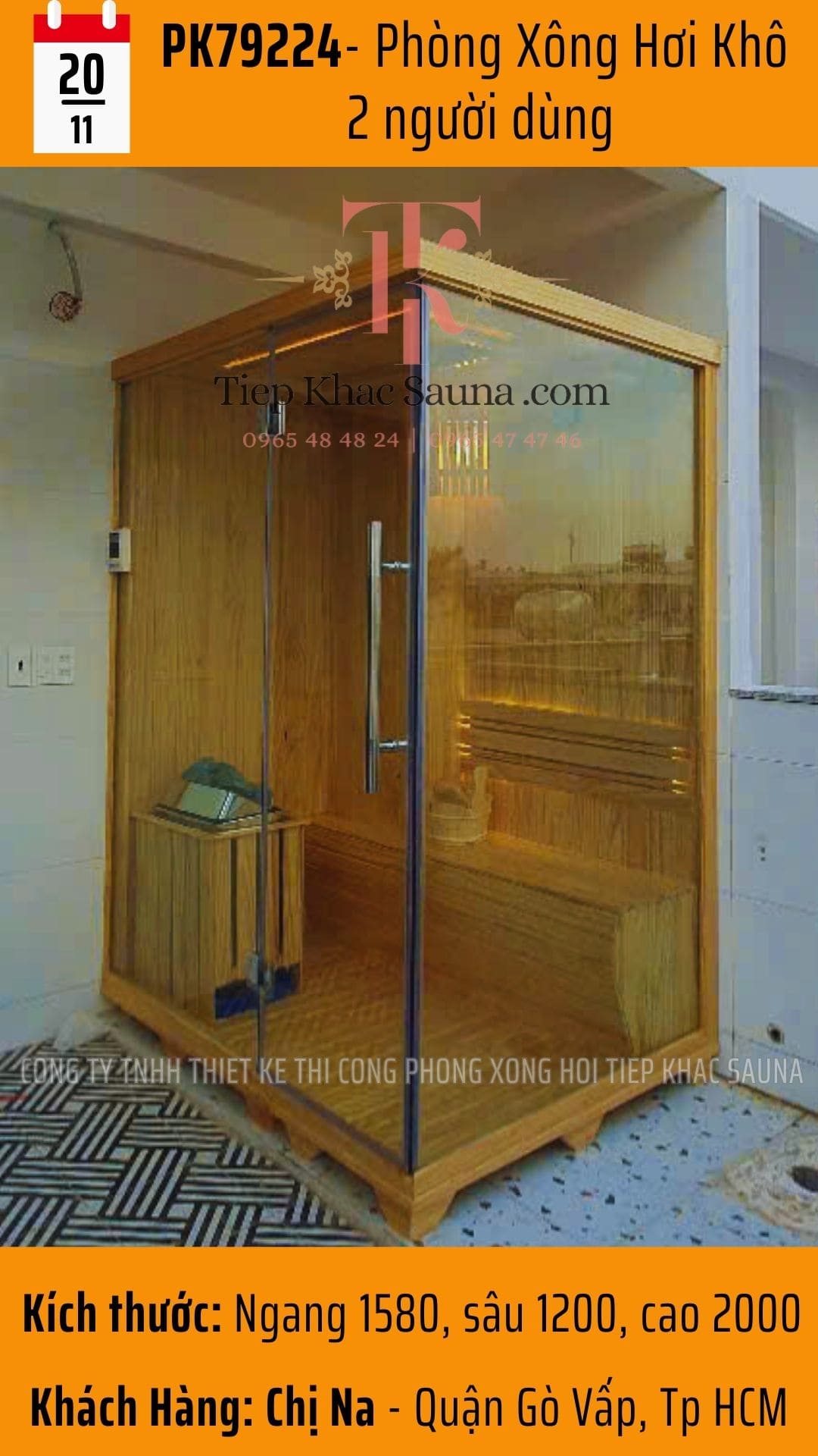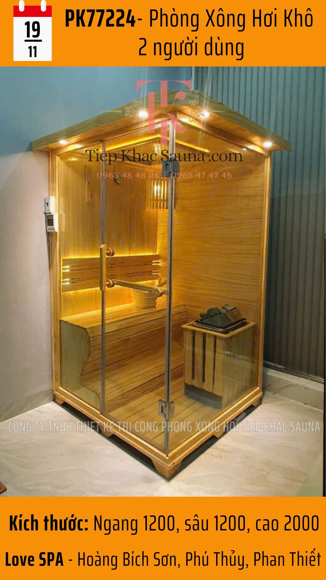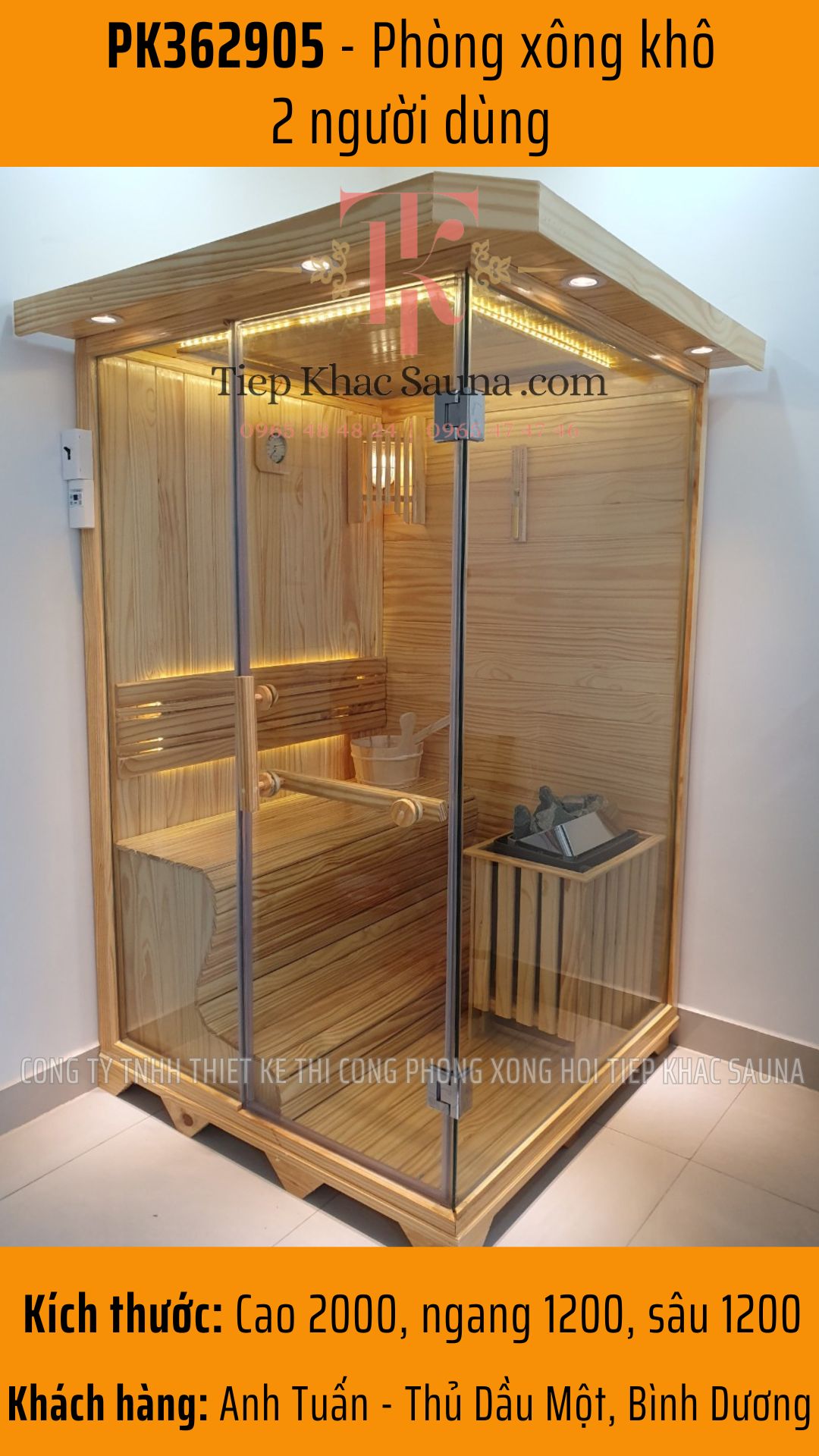 – Phòng xông hơi khô 2 người sử dụng (rộng x dài x cao): 1,2m x 1m x 2m hoặc 1,3 x 1m x 2m.