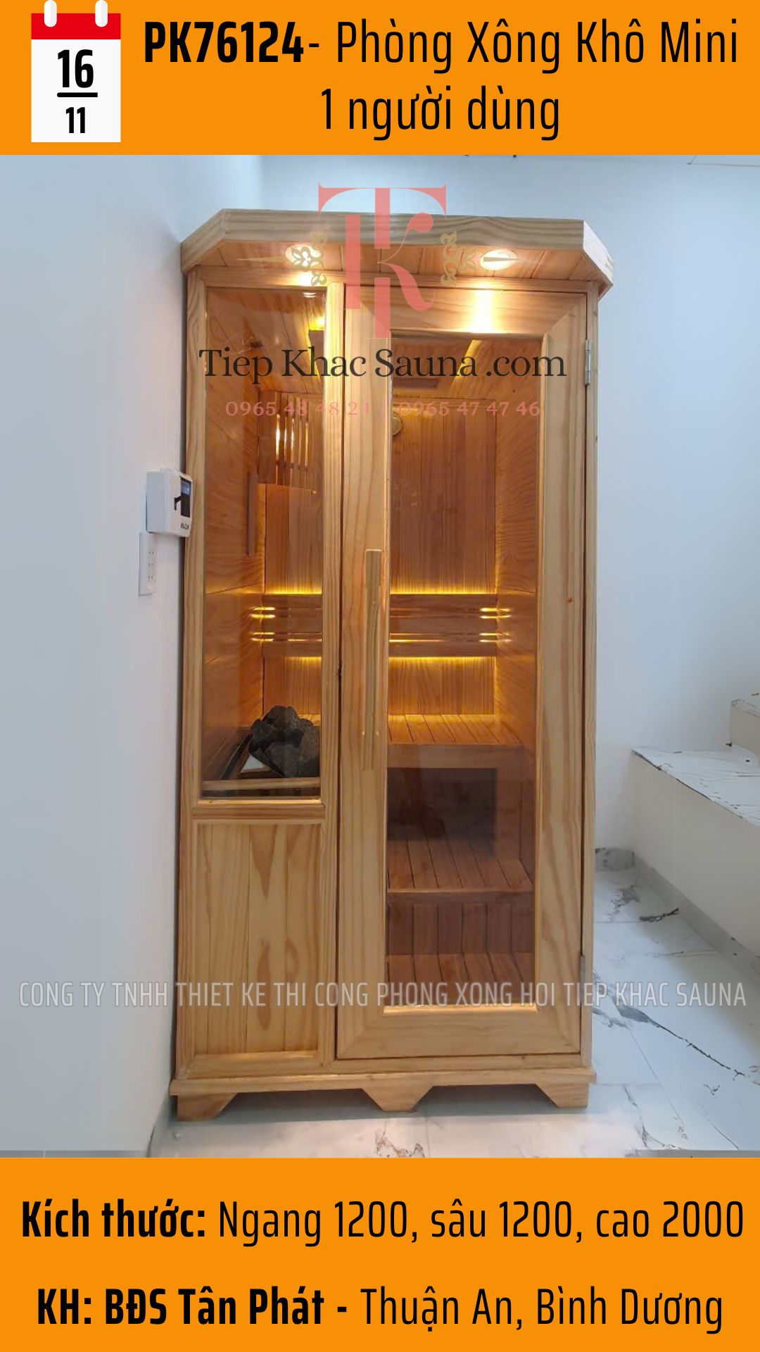 – Phòng xông hơi khô 1 người sử dụng (rộng x dài x cao): 0,9m x 1m x 2m hoặc 1m x 1m x 2m.
